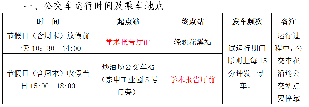 为缓解全校师生节假日(含周末)出行及返校乘车难问题,经多方协调,2016年5月20日正式开通了学校至炒油场公交专线。经过一周的试运行,在广泛征求师生意见基础上,现将学校至炒油场公交专线发车站点调整的相关事宜公告如下: