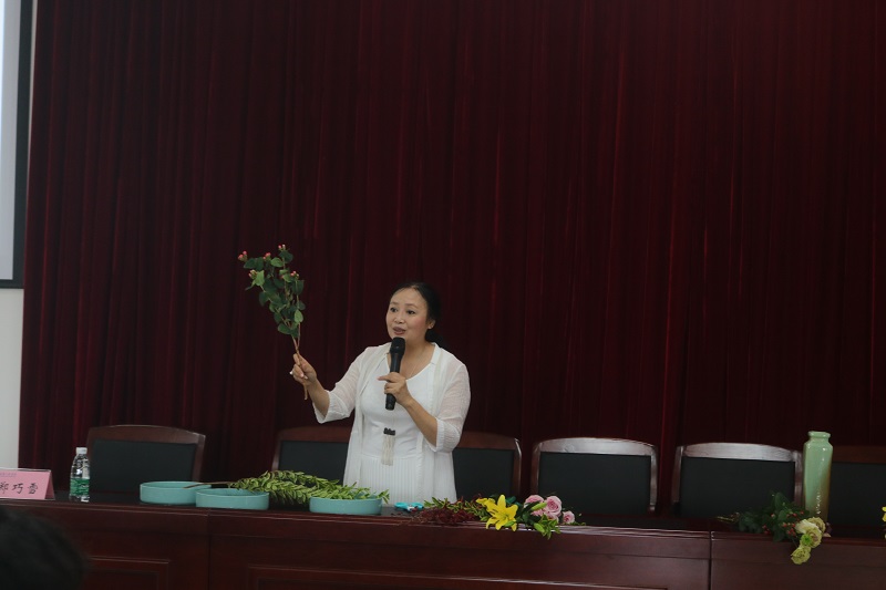 活动邀请重庆插花协会会长郑巧雪老师,为大家细致讲解插花时花的颜色选择、造型布局等,仔细分析中西方插花艺术的不同特点及插花技巧,通过现场示范制作,指导大家搭配制作出精美的插花艺术品,将原本普通的花朵经过修剪、组合成为各种造型精美、风格各异的插花造型。