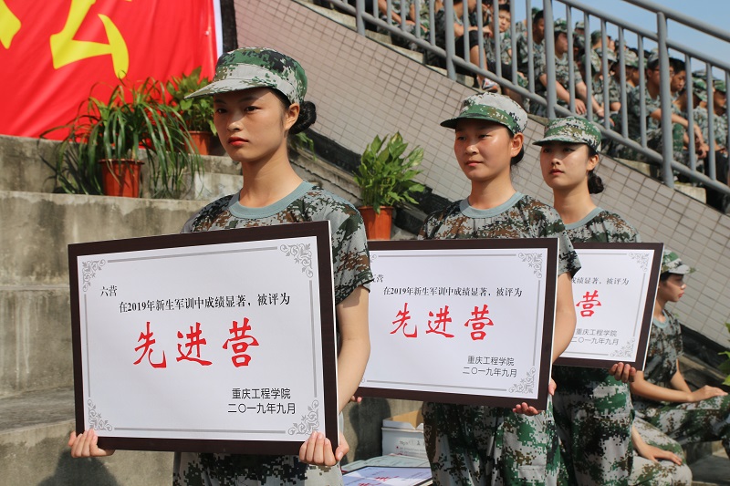 校党委书记、军训领导小组组长张业平宣读了《重庆工程学院表彰2019级新生军训先进集体和个人的决定》,学校领导为军训先进集体和个人进行颁奖。
