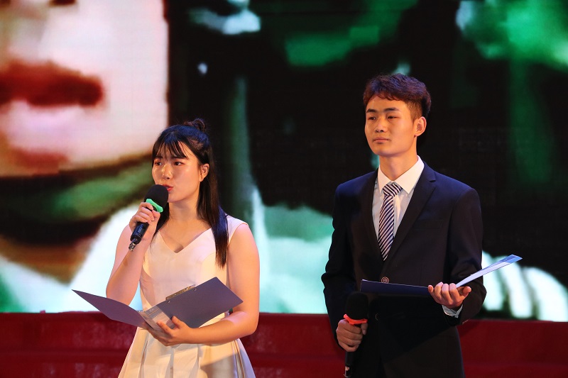 接着,精彩纷呈的文艺晚会正式上演。晚会紧扣“青春心向党,建功新时代”的主题,涵盖了诗歌朗诵、舞蹈表演、原创说唱等节目形式。由我校大学生艺术团带来的诗歌朗诵《不一样的年代,不一样的青春》,不仅诵响了晚会主题,也展示了青春洋溢、整装待发的新时代重工青年形象;
