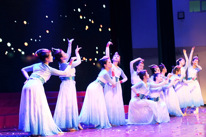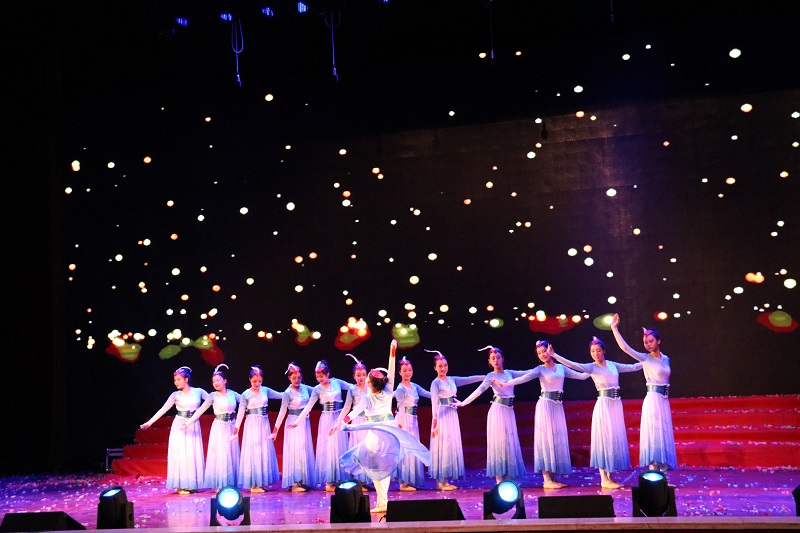 重庆工商大学融智学院大学生艺术团奉上了舞蹈表演《梦中的故乡》,舞者们在台上跳出了青春与活力,跳出了激情与梦想,将晚会气氛点燃。