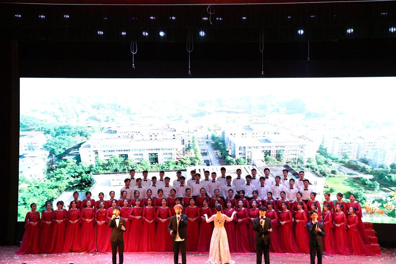 此外,歌伴舞表演《不忘初心》、《今天是你的生日》,歌曲串烧《时代之声》,原创说唱《乌蒙山》等节目也一一亮相,表现了“尽责、守信、求精、创新”的校训。