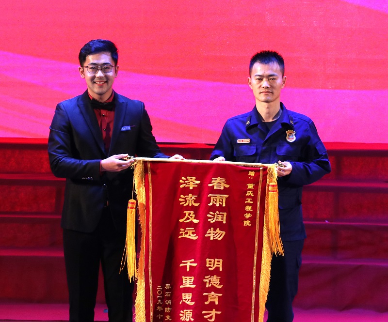 晚会中,与会领导们还分别为在重庆工程学院“我和我的祖国”系列主题教育活动中获评“优秀个人”和“优秀团队”,以及在2019年重庆市普通高校文明公寓和文明寝室评选活动中荣获“特色寝室”与“文明寝室”称号的学生代表们颁奖。