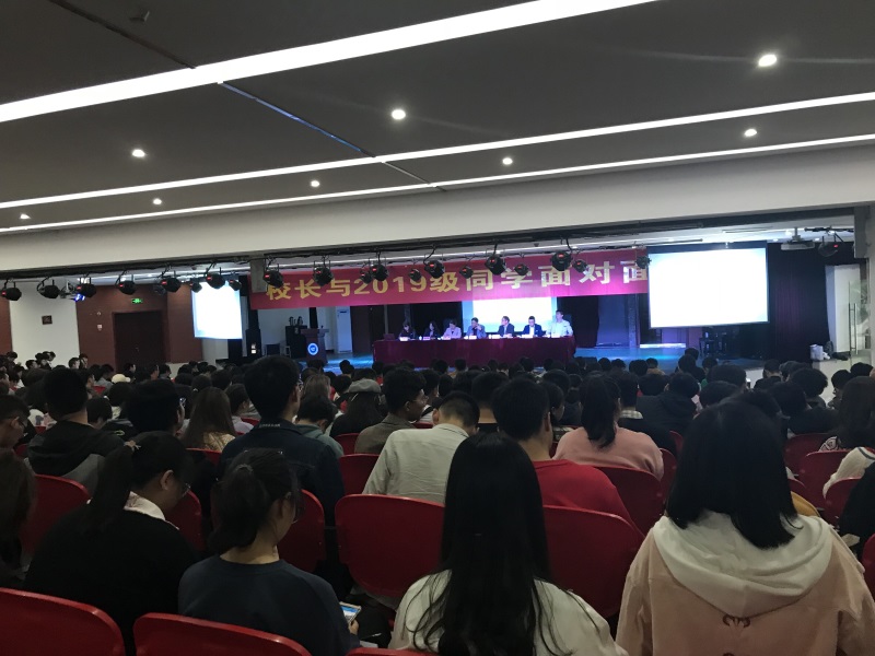 本网讯(文/图 双桥校区学生会 李聪慧 袁瑜村)10月16日下午,双桥校区“校长与2019级学生面对面”活动在报告厅举行,校长桂国庆、副校长兼双桥校区管委会主任蒋国华、教务处处长李静出席,双桥校区相关部门负责人、全体辅导员老师、学生干部及学生代表共计700余人参加活动。
