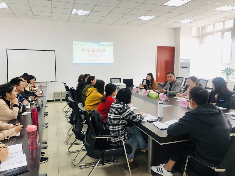 最后,桂校长向在场所有师生亲切地说道:“师生所盼就是工作所向,鼓励师生参与学校民主管理,实现决策的科学化,我们各个职能部门都要完善信息收集反馈机制,务必做到‘件件有答复、件件有落实’,全力为同学营造温馨、和谐的校园环境。”会后,桂校长还听取了双校校区工作汇报,并在校长助理简玉刚、教务处处长李静陪同下实地走访了教师住宿,并与教师代表亲切座谈,听取他们对学校工作的意见和建议。
