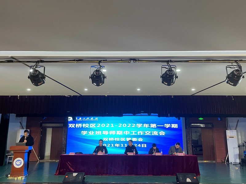 本网讯(文/图 吕颖莉)11月24日下午,双桥校区2021-2022学年第一学期学业班导师期中工作交流会在学术报告厅成功举行。重庆工程学院副校长蒋国华,马克思主义学院院长孔凡芳,双桥校区党工委副书记孙建,通识学院副院长严伟,学生事务办公室副主任王儒及双桥校区全体班导师和辅导员参会。