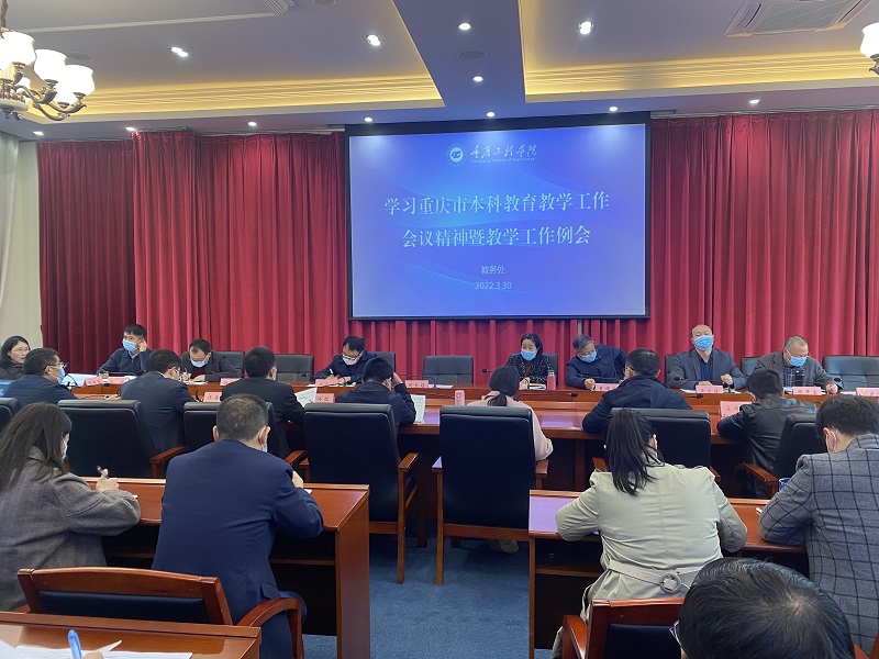 本网讯(文/图 教务处 魏玉琛)近日,学习重庆市本科教育教学工作会议精神暨教学工作例会在办公楼第五会议室召开。副校长杨桂,校长助理周龙福出席会议。