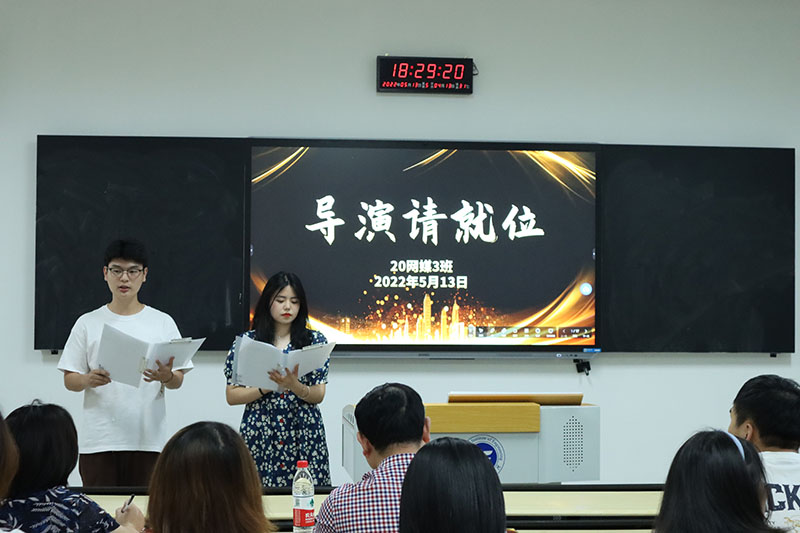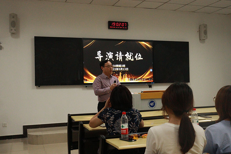 本次活动分三个展示环节。第一个环节,由班长廖冰倩同学通过自制视频介绍班级情况。第二个环节,唐旭和唐乙灵两位同学分别展示了《非线性编辑课程》的作品,并分享了本门课程学习中的经验和感悟。第三个环节为《导演基础》课程模拍作品《无间道》、《花样年华》、《大话西游》的展示,导演们分享作品创作的心路历程以及需要改进的地方,观众们也就展示的作品进行点评。