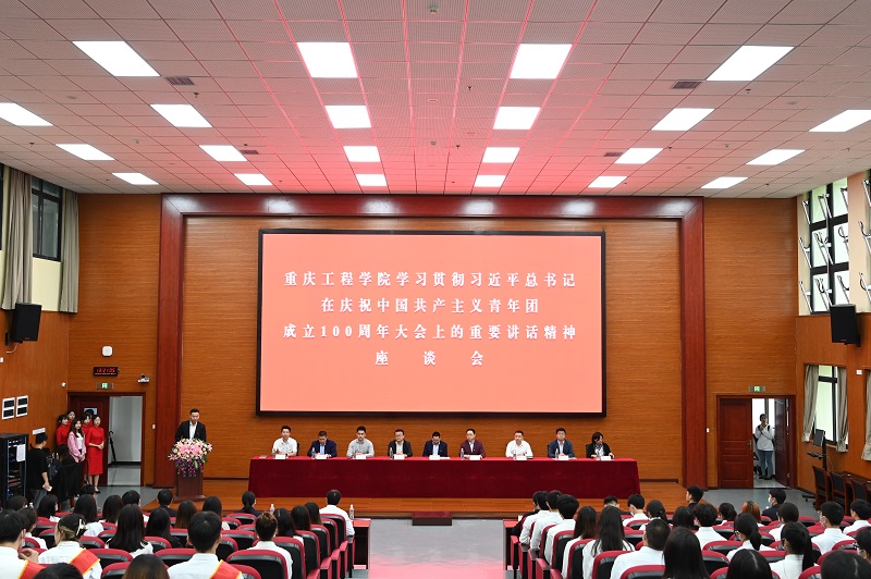 本网讯(文/图 校团委 金质纯)为深入学习贯彻习近平总书记在庆祝中国共产主义青年团成立100周年大会上的重要讲话精神,5月18-19日,学校分别在南泉校区第七教学楼报告厅、双桥校区报告厅举行重庆工程学院学习贯彻习近平总书记在庆祝中国共产主义青年团成立100周年大会上的重要讲话精神座谈会。党委书记、督导专员谭明术,党委副书记、纪委书记、常务副校长张业平,党委副书记、工会主席唐小勇,副校长王建东出席会议,各二级学院党总支书记、分团委书记以及团员青年代表等参加会议。