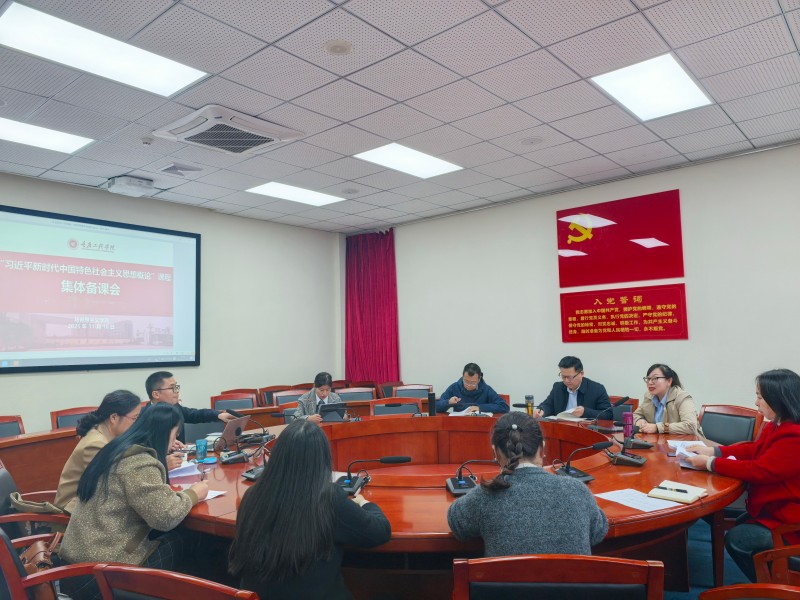 本网讯(文/图 马克思主义学院 周建武)为加强思政课教学改革,提高思政课的教学质量,增强学生的获得感。11月10日下午,学校党委书记、马克思主义学院第一书记陈长虹深入马克思主义学院参加“习近平新时代中国特色社会主义思想概论”课程集体备课会,教研室全体教师参会。会议由学院书记、副院长王巧玲主持。