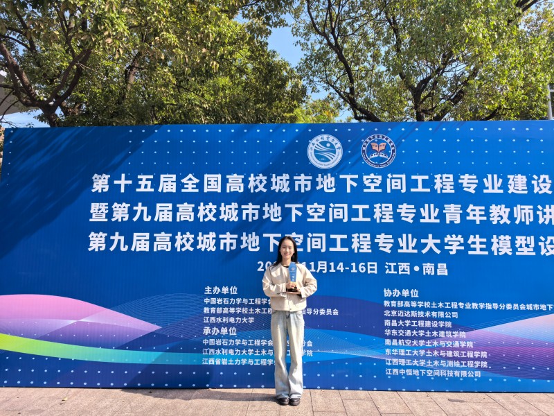本网讯(文/图 智慧城市建设学院 林俊) 近日,第十五届高校城市地下空间工程专业建设研讨会暨第九届青年教师讲课大赛在江西南昌落幕。我校青年教师袁兰凭借对《隧道与地下工程》课程的深度钻研,以扎实的教学功底、创新的课程设计及生动的课堂呈现,成功斩获讲课大赛一等奖。