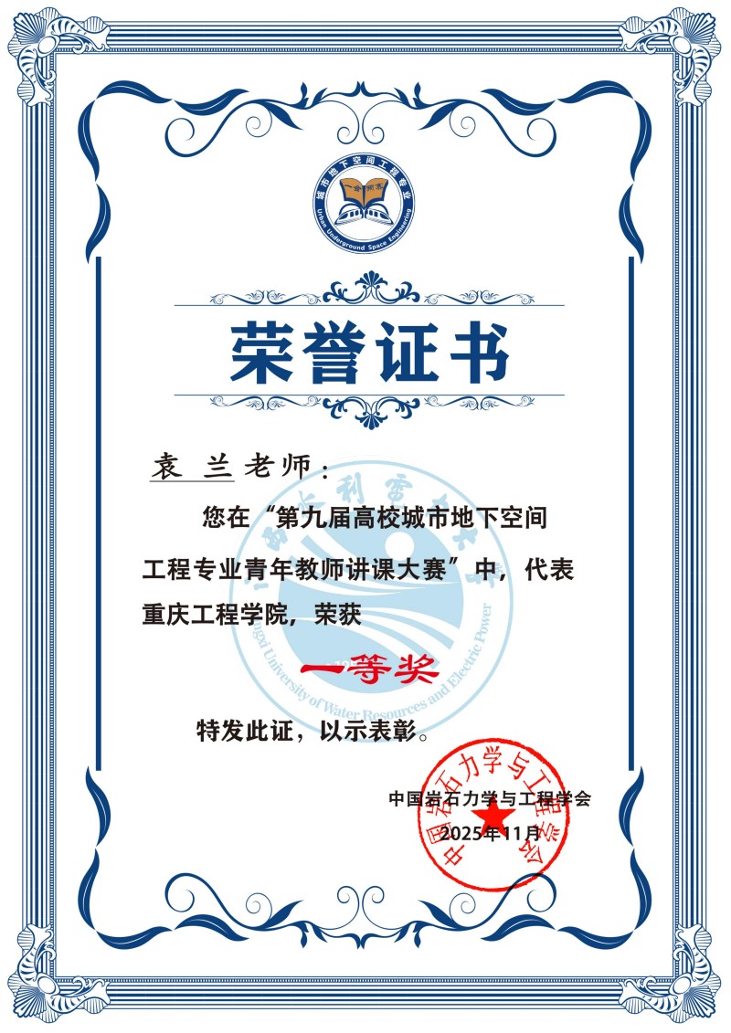 此次获奖,不仅是对袁兰个人教学能力与创新理念的高度肯定,更彰显了我校在城市地下空间工程领域课程建设的深厚积淀与育人成效,为学校相关专业教师队伍建设与课程改革注入了动力。