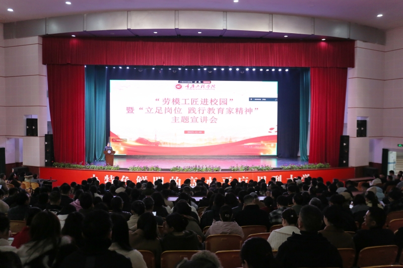 本网讯(文/人事处 杨芳琼 图/大学生记者团)为深入贯彻落实习近平总书记关于弘扬劳模精神、工匠精神和教育家精神的重要指示,锚定立德树人根本任务,12 月 10 日下午,重庆工程学院党委教师工作部联合校工会委员会,举办“劳模工匠进校园”暨“立足岗位 践行教育家精神”主题宣讲活动。全国五一劳动奖章获得者王恒教授走进校园传经送宝,校内优秀教师代表分享育人实践,南泉校区教职工现场参会,双桥校区教职工同步线上聆听,在全校范围内掀起学习榜样、践行初心的热潮。