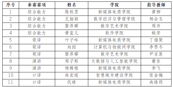 作为检验高校外语教学成果的重要平台,大赛英语组设置了综合能力、笔译、口译、演讲四大分赛项,全面考查选手的外语应用能力、跨文化沟通能力、思辨能力与创新能力。我校高度重视此次赛事,于10月初精心组织校赛选拔,通过层层考核评选出金、银、铜奖选手,并最终确定11名优秀代表参加市赛。比赛期间,由外语教研室丁福聚、李飞老师组成的指导团队全程陪同,为选手提供专业指导与后勤保障。