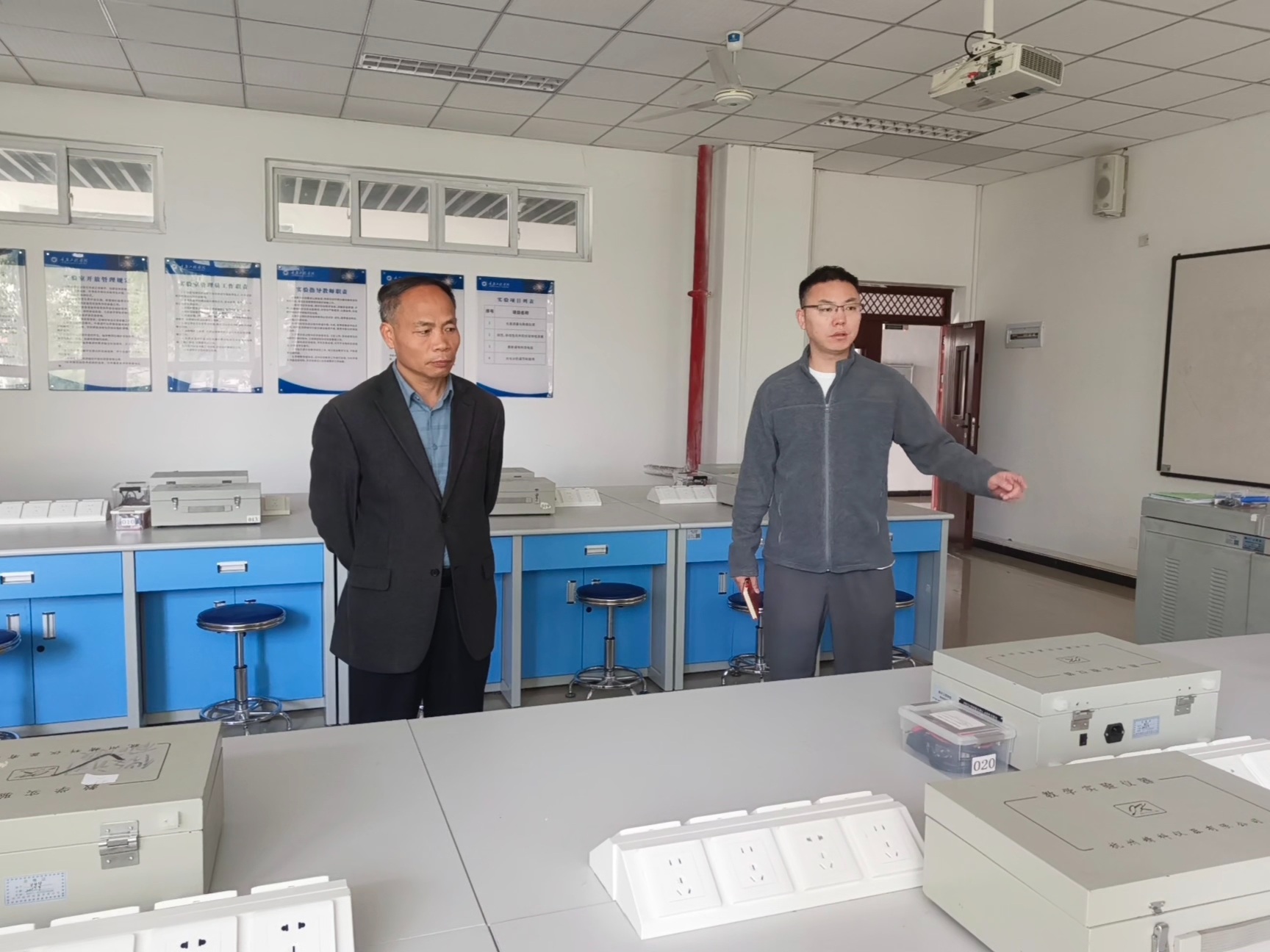 为切实保障清明节假期实验室安全稳定运行,及时消除各类安全隐患,2026年4月3日9:00,基础学院院长蒋国华、副院长张楠及教学秘书组成专项检查小组,对学院所属实验室开展了全面深入的安全检查。